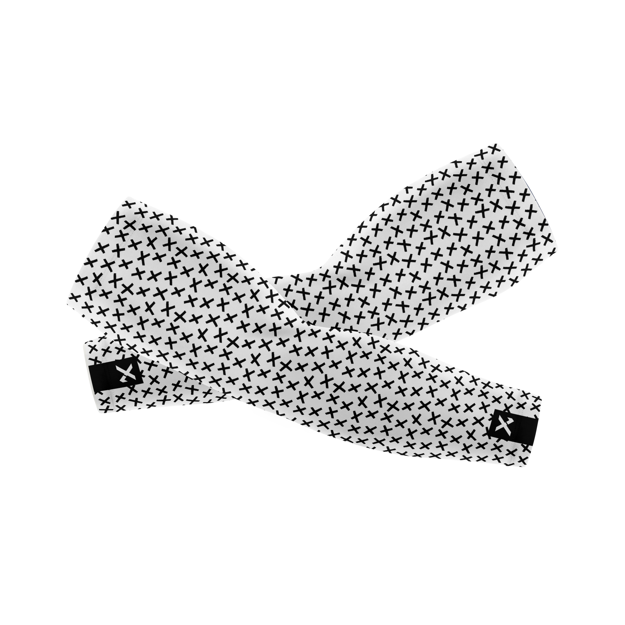 X marks the spot with our cross pattern arm sleeves. A black and white design filled with crosses from top to bottom.